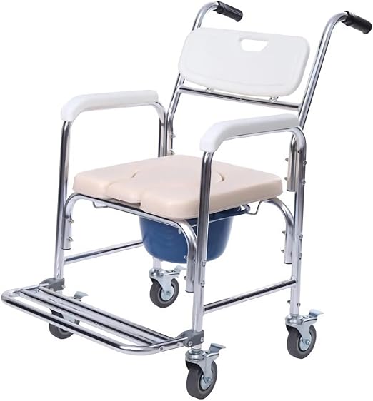 Portable Commode Wheelchair transport commode chairs offer portability, privacy and independence of their users. They’re a safer alternative for anyone with reduced mobility; With a robust aluminum frame, padded seat and backrest, detachable bucket and seat and four waterproof castors with two rear brakes, our bedside chairs are designed to improve quality of life for the ailing.