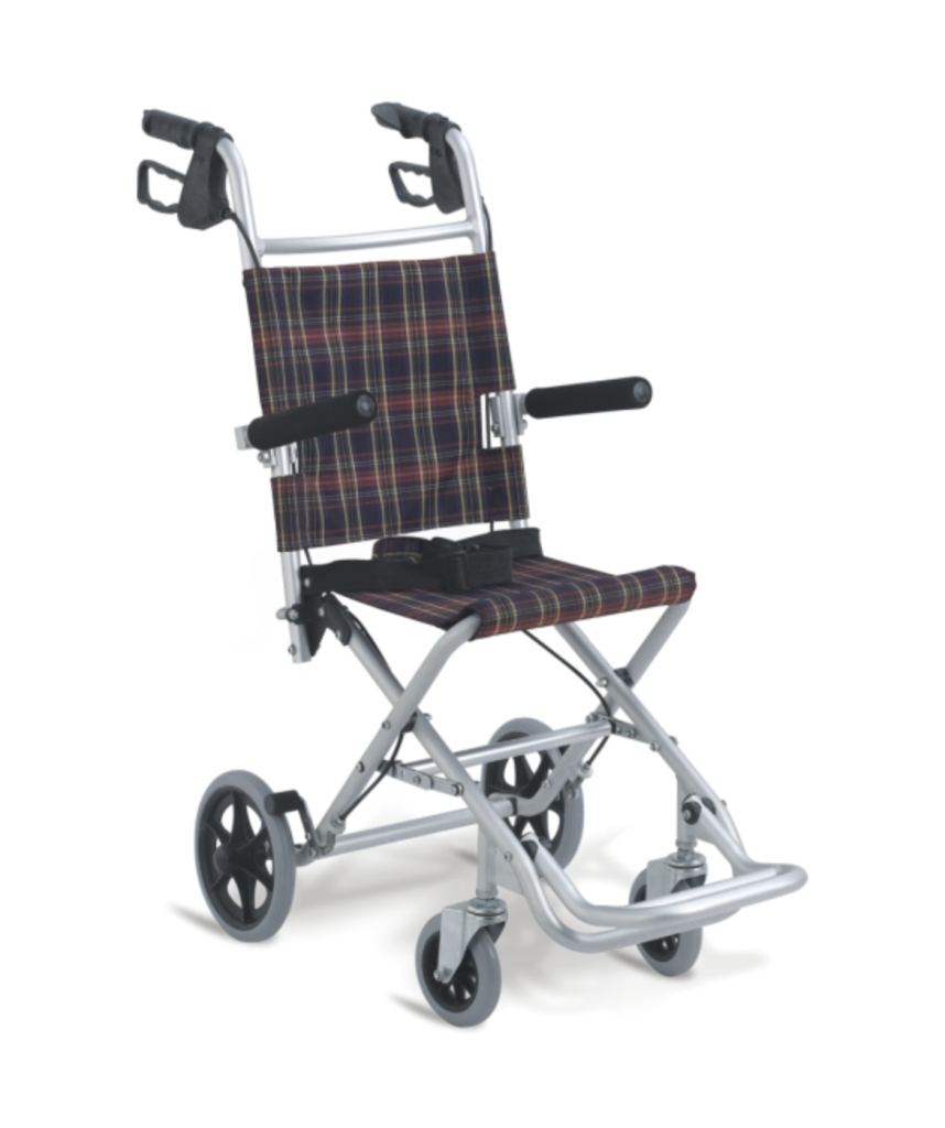 Lightest stainless aluminium travel wheelchair used on aeroplanes, trains and other public transport tools