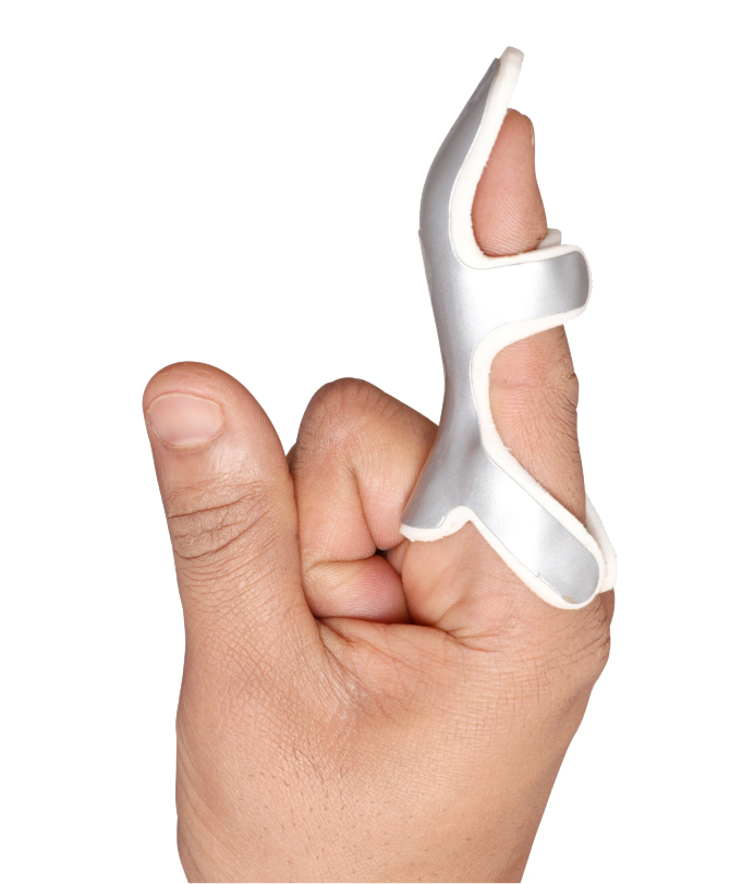 Frog-Splint Provides perfect alignment of the inter-phalangeal joints by maintaining them in optimal functional position. Malleable arms fold to hold the finger in the finger in the desired position. No tapes required.